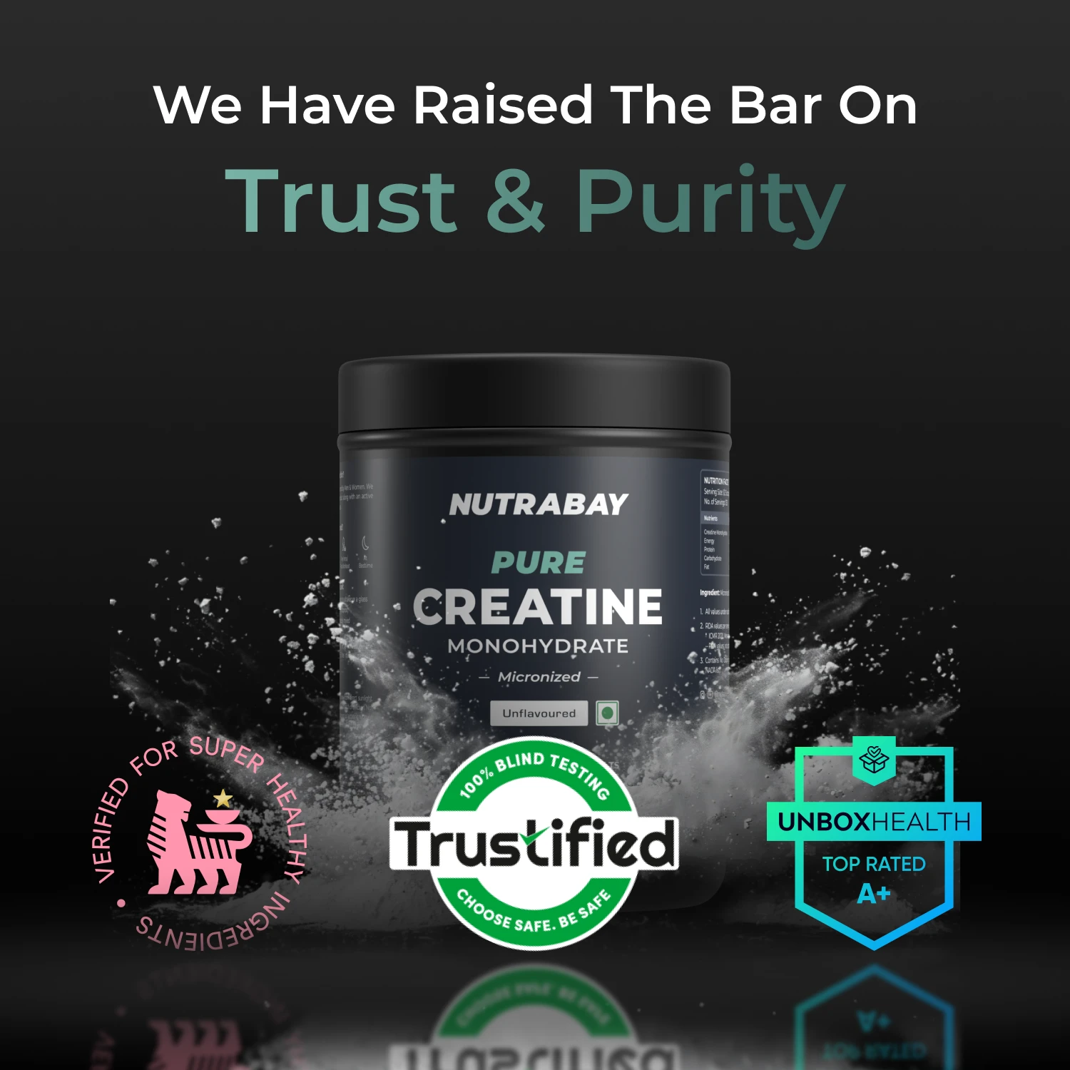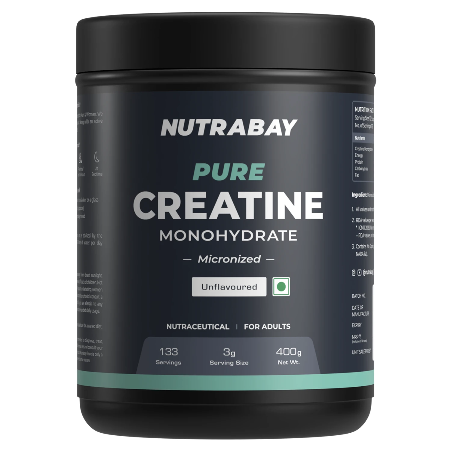 Nutrabay Pure Creatine Monohydrate Micronized is a high-quality supplement designed to support strength, power, and overall workout performance. It is made using pure creatine monohydrate and processed into a micronized form for better absorption and easy mixing.