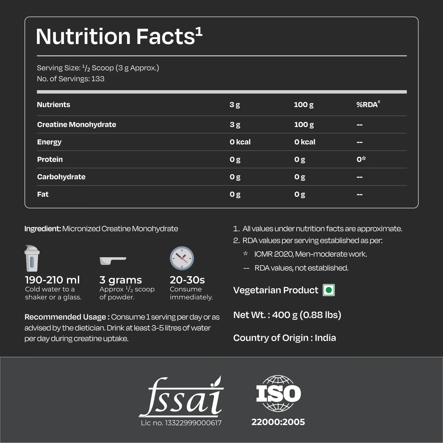 - Contains 100% pure creatine monohydrate
